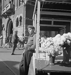 Vendor on Market Square, circa 1941, with the Market House in the background