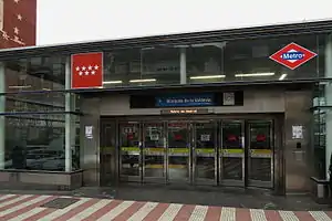 Marqués de la Valdavia [maɾˈkes ðe la βalˈdaβja] is a station on Line 10 of the Madrid Metro, near the Calle del Marqués de la Valdavia, which was named for the politician Mariano Ossorio Arévalo, 3rd Marquess of Valdivia (1889–1969).[1] It is located in fare Zone B1.[2]