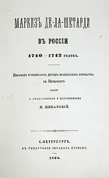 The front page of the 1862 edition of La Chetardie's dispatches.