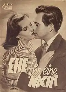 Marriage for One Night (German: Ehe für eine Nacht) is a 1953 West German comedy film directed by Viktor Tourjansky and starring Gustav Fröhlich, Hannelore Bollmann and Adrian Hoven.[1] It was shot at the Carlton Studios in Munich. The film's sets were designed by the art directors Ernst H. Albrecht and Arne Flekstad.