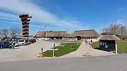 Marsk Tower ("Marsh Tower" in English) is a double helix-shaped corten steel observation tower designed by the Bjarke Ingels Group located in Wadden Sea National Park, specifically at the Marsk Camp in the southern Denmark town of Skærbæk. it overlooks both the North Sea and the park itself. The tower, a double spiral staircase consisting of 272 steps (141 ascending and 131 descending), was commissioned by the town of Skærbæk in an effort to boost tourism to the area.[4]