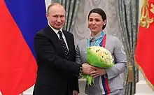 ![]() Zaynullina (right) with Vladimir Putin (left) after the 2018 Winter Paralympics | ||||||||||||||||||||||||||||||