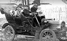 ![]() in 1906 being driven by her brother whilst held by her father | |