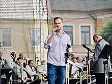 In May 2013, Chodúr introduced his new jazz project, Martin Chodúr Sings Jazz, accompanied by a band whose members were Vlastimil Šmída, Patrik Benek, Jan Kyjovský, Marián Friedl, and Marcela Božíková. The successful project continued in the spring of 2014 with Martin Chodúr Sings Chansons and in May 2015, Martin Chodúr Sings Film Melodies.[39] The ensemble performed at a number of jazz festivals, including Vsetín Jazz Festival,[40] St. Wenceslas Music Festival of the Moravian-Silesian Region, St. Nicholas Jazz Festival,[41] Jarda Marčík Swing Festival,[42] and Těšín Jazz Festival.[43]