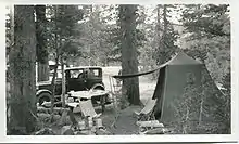 Mary Agnes camping in Yosemite with their 1920s Buick," Yosemite Valley, California, circa 1936.