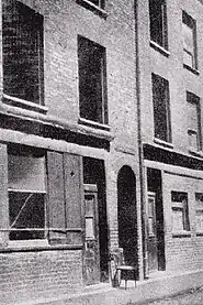 In early 1888, Kelly and Barnett moved into 13 Miller's Court, a small, sparsely furnished single room at the back of 26 Dorset Street, Spitalfields.[40] This room had once been the back parlour of 26 Dorset Street and was partitioned by a wooden wall. The weekly rent for this room was 4s 6d.[41]