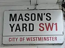 - ↑ "London's Alleys: Mason's Yard, SW1". www.ianvisits.co.uk. UK: ianVisits. 12 February 2018. Retrieved 27 November 2022.