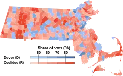 The 1950 Massachusetts gubernatorial election was held on November 7, 1950. Democratic incumbent Paul A. Dever defeated Republican Arthur W. Coolidge, Socialist Labor candidate Horace Hillis, and Prohibition candidate Mark R. Shaw.