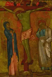The Master of the Gubbio Cross was the name given to an Umbrian painter active between about 1285 and about 1320. He appears to have been familiar with the artists working at the Basilica of San Francesco d'Assisi, and some of his work bears a resemblance to that of Giunta Pisano.