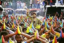 Filming was scheduled to begin in November or early-December 2014, following the filming of Mr. and Mrs. Ramachari, another Yash-starrer.[3] While delayed, reports said filming was to begin in the second week of January 2015.[6] In June 2015, it was revealed that model Ekta Rathod would make a cameo appearance in the film.[7] In the midst of filming, The New Indian Express carried a report in July suggesting that Yash could be playing a negative role in the film, which however was not confirmed by the makers.[8] in the course of filming in September, it was revealed that the film would incorporate elements from the life story of a revolutionary leader of British India, Bhagat Singh. A schedule in Mysore was completed, following which the song sequences were filmed.[9]