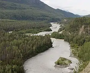 The Matanuska River (Dena'ina: Ch'atanhtnu; Ahtna: Ts'itonhna’) is a 75-mile (121 km) long river in Southcentral Alaska, United States.[3] The river drains a broad valley south of the Alaska Range eponymously known as the Matanuska Valley.[6]