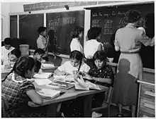 Navajo students learning arithmetic (c. 1940). By the late 1950s, mathematics education had become more rigorous.