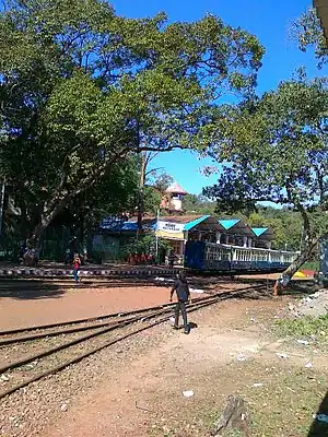 The station is at an elevation of approximately 2,625 feet (800 m) in the Western Ghats.[1] As no automobiles are allowed in Matheran it provides the sole mechanised means of transport, the alternative being walking or horseback from the previous station Aman Lodge,[2] some 3 km distant.[3]