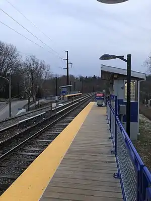 Matsonford station is a SEPTA rapid transit station in Lower Merion Township, Pennsylvania. It serves the Norristown High Speed Line (Route 100) and is located at Matsonford Road and Montgomery Avenue (PA 320). Local, Hughes Park Express, and Norristown Express trains all stop at Matsonford. The station lies 9.4 track miles from 69th Street Terminal. There is off-street parking available at this station, over the southwest corner of Matsonford & Montgomery. The tracks run above the southeast corner and bridges can be found over both streets. Until October 1995, the station was named Conshohocken Road.[1]