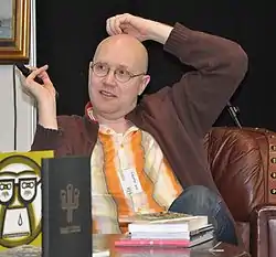 Matti Hagelberg (born 1964 Kirkkonummi) is a Finnish comic book artist, illustrator, graphical designer and teacher. He attended the University of Art and Design in Helsinki and achieved a Master of Arts degree. Hagelberg is the only famous Finnish author to use scratch cardboard as his medium and has won a Puupää hat award of the Finnish Comic Society in 1997. He is married to Katja Tukiainen with one child.