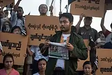 After the 2021 coup d'état, he became a leader of the nationwide protests.[7] On 17 April 2022, he co-founded the Bamar People's Liberation Army, an ethnic armed organisation that strives for ethnic federalism in Myanmar, in which he serves as a commander.[8]