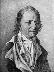 On the evening of 17 July, after the Champ de Mars massacre, the authorities ordered numerous arrests. Robespierre, who attended the Jacobin club, did not dare to go back to the rue Saintonge where he lodged, and so asked Laurent Lecointre if he knew a patriot near the Tuileries who could put him up for the night. Lecointre suggested Duplay's house and took him there.[1] Maurice Duplay, a cabinetmaker and ardent admirer lived at 398 Rue Saint-Honoré near the Tuileries. After a few days Robespierre decided to move in, although he lived there in the backyard so that he was constantly exposed to the sound of working.[2] He was motivated by a desire to live closer to the Assembly and the meeting place of the Jacobins in the Rue Saint-Jacques. According to his friend, the surgeon Joseph Souberbielle, Joachim Vilate, and Duplay's daughter Élisabeth, Robespierre became engaged to Duplay's eldest daughter Éléonore, but his sister Charlotte Robespierre vigorously denied this. Also Augustin refused to marry her.[3][4][5] The men in the family (Maurice, his son and nephew) were all actively involved in official duties thanks to Robespierre's patronage.[6] On 29 October 1793 Duplay became a member of the Revolutionary Tribunal.