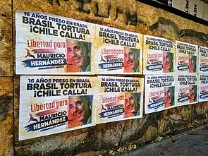 ![]() Poster with the image of Mauricio Hernández Norambuena, outside of the Centro Cultural Gabriela Mistral during the 2019–20 Chilean Social Outbreak | |