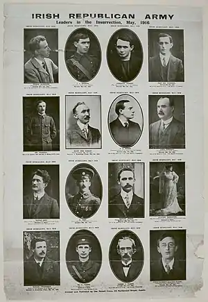 Poster of leaders of the Easter Rising in Dublin, many of whom were arrested and later executed by British authorities.