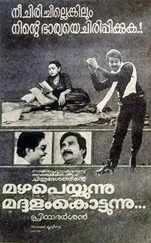 Mazha Peyyunnu Maddalam Kottunnu (transl. It is raining and Maddalam is playing) is a 1986 Indian Malayalam-language comedy film directed by Priyadarshan and written by Sreenivasan from a story by Jagadish. It stars an ensemble cast led by Mohanlal, Mukesh, Sreenivasan, Jagathi Sreekumar, Maniyanpilla Raju, Kuthiravattam Pappu and Lissy. Mammootty appears in a brief cameo role. The film was one of the highest-grossing Malayalam films of the year. It is now considered one of the best comedy films in Malayalam cinema.[1][2][3] The film was remade in Telugu as Saradaga Kasepu and in Tamil as Manandhal Mahadevan (1989).