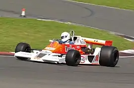 In 1980 Tiga rebuilt an M26 as a full ground effects car and it was re-engined with a five-litre Chevrolet engine and raced as a Formula 5000.[3] Alfredo Costanzo used this car to win the 1981 Australian Drivers' Championship.