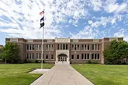 Milton-Freewater's first school was founded in 1872. In 1879 a four-room school was constructed and later expanded in 1909 with the construction of Central School (now Central Middle School).[3] This building housed the town's high school until 1922 when the construction of McLoughlin Union High School was completed. The red and white brick structure, built in 1921 to 1922, originally consisted of three wings housing eight classrooms, a library, study hall, science labs, a 1,100-seat auditorium, an industrial arts wing, and a gymnasium.[4] Over 100 years later, the remodeled building continues daily operations in an expanded campus. It is supplemented with five additional buildings, including a dedicated gymnasium and industrial arts center.