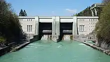 Two large factories, Color[7] and Donit,[8] are based in Medvode. The Sava River at Medvode is also the location of the Medvode Hydroelectric Power Plant.[9] The hydroelectric plant was built in part using forced labor by Catholic priests held as political prisoners after the Second World War.[10] There are a total of 1570 companies registered in Medvode that generate a total of 454,714,000€ annually.