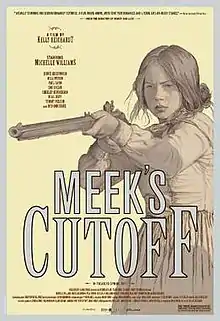 Meek's Cutoff is a 2010 American Western film directed by Kelly Reichardt. The film was shown in competition at the 67th Venice International Film Festival.[3] The story is loosely based on a historical incident on the Oregon Trail in 1845, in which frontier guide Stephen Meek led a wagon train on an ill-fated journey through the Oregon desert along the route later known as the Meek Cutoff in the western United States. The film is formatted in the Academy ratio (1.37:1), a standard used in many classic Westerns.[4]