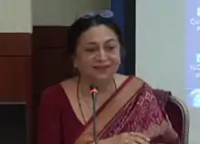 Meenakshi Gopinath is an Indian educationist, political scientist, writer and a former principal of Lady Shri Ram College, New Delhi.[1] She is the founder and incumbent director of the Women in Security Conflict Management and Peace (WISCOMP), a non governmental organization promoting peace and socio-political leadership among the women of South Asia[2] and a former member of the National Security Advisory Board, the first woman to serve the Government of India agency.[1] She has served as a member of the selection panel of the Lokpal, a legal body which has jurisdiction over the legislators and government officials of India.[3] The Government of India awarded her the fourth highest civilian honour of the Padma Shri, in 2007, for her contributions to Indian educational sector.[4] She is a co-editor of the International Feminist Journal of Politics, the leading journal of feminist international relations and global politics.[5]