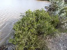 This species was first formally described in 1847 by the Russian botanist Nikolai Turczaninow in Bulletin de la Société Impériale des Naturalistes de Moscou.[4][5] The specific epithet (blaeriifolia) is derived from the name of a genus of plants Blaeria in the family Ericaceae, and the Latin folium for "leaf" in reference to the similarity of its leaves to those of plants in that genus.[3]