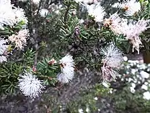 Melaleuca bromelioides is a plant in the myrtle family, Myrtaceae and is endemic to the south-west of Western Australia. It has distinctive, pine-like, prickly leaves and flowers that change colour from white to reddish as they age.