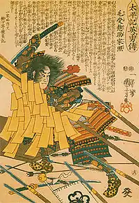 Menjō Katsuteru (毛受家照, died 1583), also known as Menju Katsusuke, was a general and retainer of Shibata Katsuie. As one of the Three Famous Swordsmen of the Battle of Shizugatake, he fought with outstanding valor until he was killed in battle.