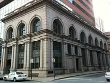 Merchants Bank Building, Baltimore 2014, after a new postmodern skyscraper was built in the 1980s.