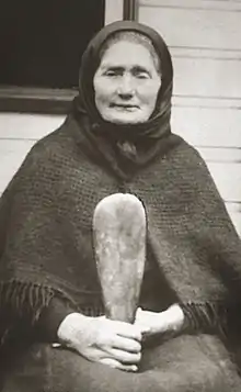When the whaling station closed down in the mid-1840s, her father worked as a fisherman,[1] and did wage work on nearby farms as labourer and shepherd.[2] By 1851 the family lived in a clay house, grew wheat and potatoes, and raised pigs and cattle. Mere probably attended the local mission school.[1]