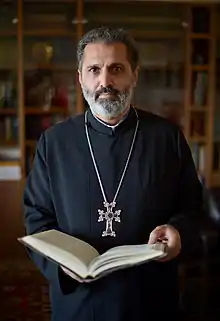 Fr. Mesrop Aramian (Armenian: Տ. Մեսրոպ քահանա Արամյան; born Matevos Aramian, June 20, 1966, in Yerevan, Armenian SSR) is a priest of the Armenian Apostolic Church, theologian, scholar, writer, film producer, social entrepreneur and educator. Author of Ayb School's educational program (Araratian Baccalaureate) and founding chairman of the Board of Trustees.He is a co-founder of the Ayb Educational Foundation.[1] He is a co-founder and member of the Board of Trustees of the Foundation for Armenian Science and Technology (FAST.)[2] Fr. Mesrop Aramian is a member of the AUAC Board of Trustees.[3] Fr. Mesrop Aramian is the chief editor and founding director of "Gandzasar" Theological Center. He is the founder and director of "Vem Media Arts" and "Vem" Radio Station.[4] He is the scriptwriter and producer of the documentary From Ararat to Zion,[5][6] creative producer of the film The Book and the author of its idea.[7][8] Fr. Mesrop has authored an Eastern Armenian translation of The Book of Lamentations by St. Gregory of Narek.[9] He has also authored publications, articles, research studies, radio and TV shows, as well as educational projects and programs.