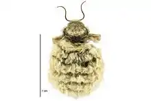 The larvae are polyphagous on grasses and herbs.[9] They are hairy and are variable in colour, ranging from straw yellow to deep brown.[7] The larvae appear to overwinter in the larval and pupal stages, the adults having only a very brief life span of approximately 21 days confined to the summer months.[10] Early instars feed during warm periods.[10] The last larval instar lives in the cold winter months of June to August and is inactive and overwinters until warmer spring weather occurs. Because of individual variations in the duration of the larval instars, pupae too may overwinter.[10] Cocoons are attached to wood and will only rarely be under stones if there is no other ground cover.[7]