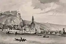 19th-century depiction of Dinant, with its citadel situated on the hill overlooking the town and river