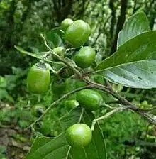 The fruit is a berry-like drupe. Seed dispersal is mostly by birds, though monkeys, porcupines and squirrels have also been observed eating the fruits.
