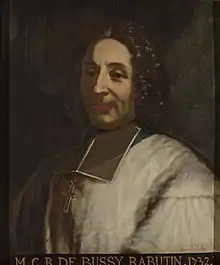The second son of Count Roger de Bussy-Rabutin, he served as Bishop of Luçon from 1723 until his death. He attended the salon of Madame de Tencin; he was elected to the Académie française on 21 February 1732, without having written a single work, being sponsored into the French Academy by Fontenelle the following 6 March. In 1735 he commissioned a portrait of himself by Hyacinthe Rigaud without knowing how he would pay for it – the artist's accounting books state "Monsieur the Bishop of Luçon, Bussy-Rabutin. Remains half-finished.".[1]