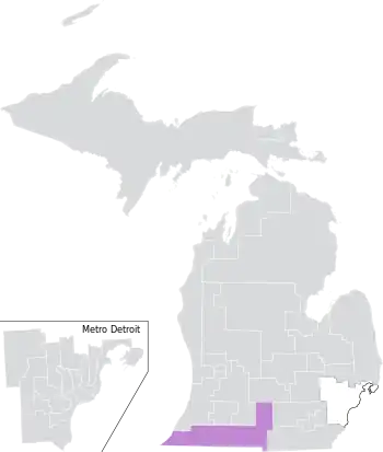 The district was located entirely within Michigan's 7th congressional district, and overlapped with the 17th, 56th, 57th, and 65th districts of the Michigan House of Representatives.[8] It bordered the state of Ohio, and shared a water border with Canada via Lake Erie.[1]