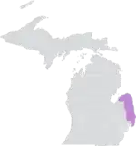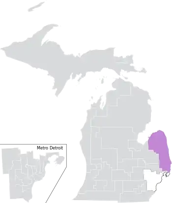 The district was located entirely within Michigan's 10th congressional district, and overlapped with the 32nd, 33rd, 81st, 83rd, and 84th districts of the Michigan House of Representatives.[7] Most of the district lied along Lake Huron, and it shared a border with Canada via the St. Clair River.[1]