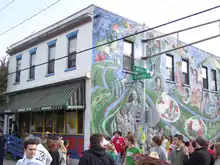 The Mifflin Street Block Party began in 1969 as a street protest, which involved dancing in protest against the Vietnam War. Its original date, May 3, was set to coincide with the one-year anniversary of the French student rebellion. Anti-war sentiments had accelerated in Madison since the 1967 Dow Chemical protest in which thousands of students occupied and were violently expelled from Ingraham Hall.[4] The original event arose as part of a continuing conflict between students and police, centered on Mifflin Street. Police refused to allow permission for the street dance and when they entered the area in response to a noise complaint, a confrontation ensued that lasted three nights and spread into the surrounding student areas. Students threw stones at the police and constructed barricades to defend themselves. The police responded with tear gas and billy clubs.[5] At the end, 70 people were injured and more than 100 arrested, including future mayor, Paul Soglin.[6]