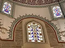 Flower mosaics displayed on the windows of the Mihrimah Sultan Mosque