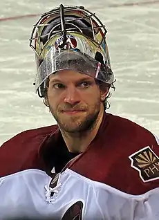 Mike Smith (born March 22, 1982) is a Canadian professional ice hockey goaltender who is an unrestricted free agent. He most recently played for the Edmonton Oilers of the National Hockey League (NHL). Smith has previously played for the Dallas Stars, Tampa Bay Lightning, Phoenix/Arizona Coyotes, and the Calgary Flames. Smith is the 11th goaltender in NHL history to score a goal, which he did in the 2013–14 season against the Detroit Red Wings.[1] A two-time NHL All-Star (2017, 2018),[2] he was named to the 2014 Canadian Olympic Hockey Team, winning a gold medal at the 2014 Winter Olympics.[3]