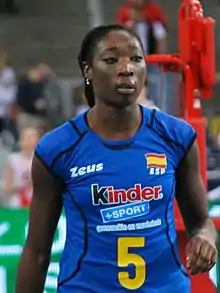 Milagros Catalina Collar Nguema (born 15 April 1988) is a Spanish volleyball player, playing as an Opposite hitter (she formerly played as a Middle Blocker). She has been a member of the Spain women's national volleyball team. She is of Equatorial Guinean descent.[6]
