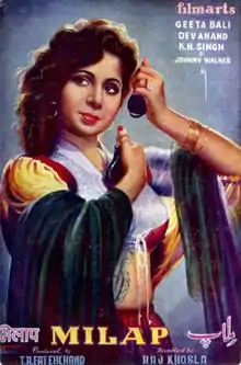Milap (lit.'The Union') is a 1955 Indian Hindi-language comedy drama film directed by Raj Khosla.[1] The film featured Dev Anand and Geeta Bali in the lead roles.[2]