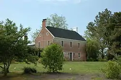 Its 1746 construction date is carved on a brick on the interior face of the north chimney & was confirmed by dendrochronology test in the 1990s. The formal two-story brick gabled structure, two bays deep and three bays wide, has interior end chimneys terminating in molded caps.[2]