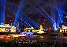 The parade celebrated the 81st anniversary of the KPRA.[15][16] It was one of the only times a parade was held on a non-jubilee year; the parade that was planned for the previous year was cancelled due to the preparations for the parade on the 100th anniversary of Kim Il Sung that was held ten days prior to the planned parade.[17] It was the first to be held on the forecourt of the Kumsusan Palace of the Sun. Military hardware was not displayed during the parade.[18] Speeches were delivered by commanders of the different branches of the KPA, during which they spoke of the military readiness of their branches.[19]