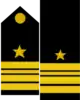 | Admiral | Nënadmiral | Kundëradmiral | Kapiten i Rangut I | Kapiten i Rangut II | Kapiten i Rangut III | Kapiten Lejtnant | Lejtnant | Nënlejtnant | ||||||||||||||||||||||||||||