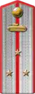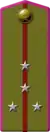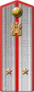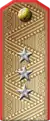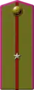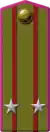 The corps colours that were introduced in 1935, remained in use with minor changes. The padding of the newly introduced shoulder straps were made from wool cloth, designed in branch of service colours with piping. Command staff wore silver or gold stars and characteristic metallic branch badges.